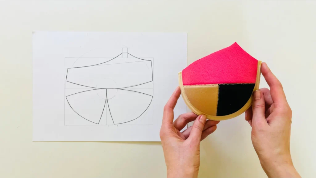 In the module Large bra cups we make designs using standard and non-standard plus size measurements. Learning from standard measurements is a necessary condition for mastering the algorithm and training the eye to understand the shape of pattern details.