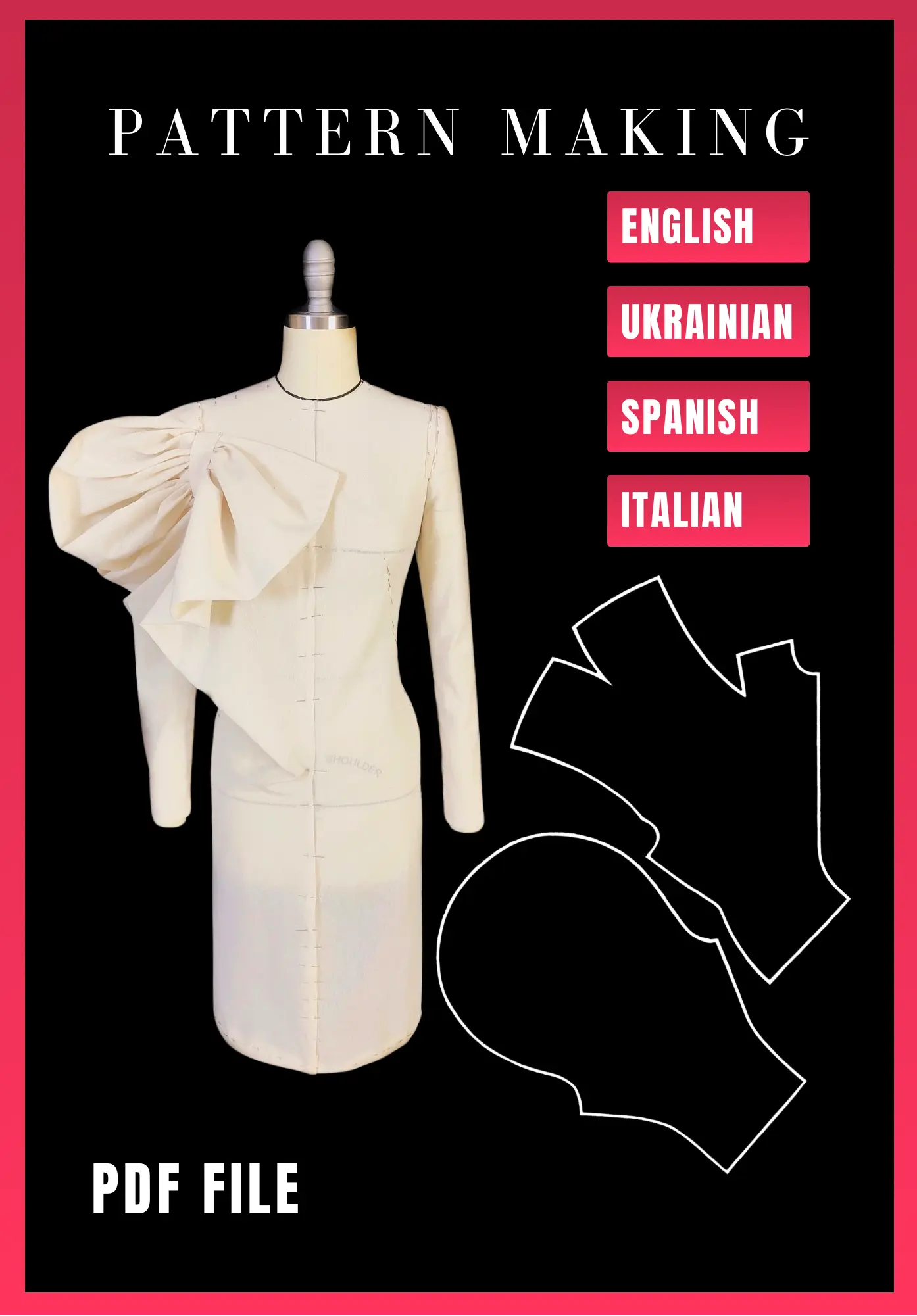 Design based on Viktor&Rolf brand shirt. In the original design the bow is less active. Changing the size and volume of the bow is solved by using smaller numbers in the pattern making process. The pattern making logic remains unchanged at any bow size. To master the creation of a bow you need to go through 62 steps presented in eBook.